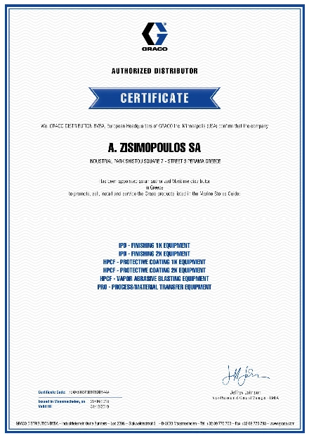 Η Ζησιμόπουλος ΑΒΕΕ είναι επίσημη αντιπρόσωπος της Graco για προϊόντα του Maritime στην Ελλάδα.